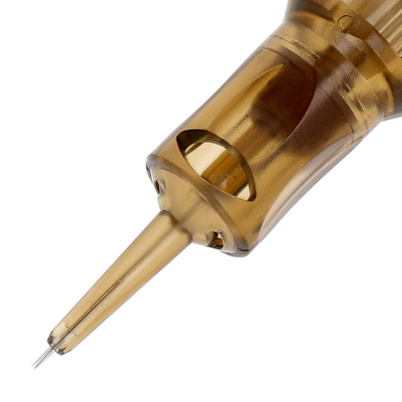 El nuevo cartucho Round Shader Hybrid ofrece una precisión y un control legendarios. Diseñado para sombreados y rellenos impecables, proporciona transiciones suaves y acabados delicados. Las agujas están dispuestas a lo largo de la circunferencia de un círculo, paralelas entre sí, lo que garantiza una cobertura uniforme de la piel y un aspecto natural. El sistema híbrido asegura la máxima estabilidad de las agujas y un flujo de tinta fluido.